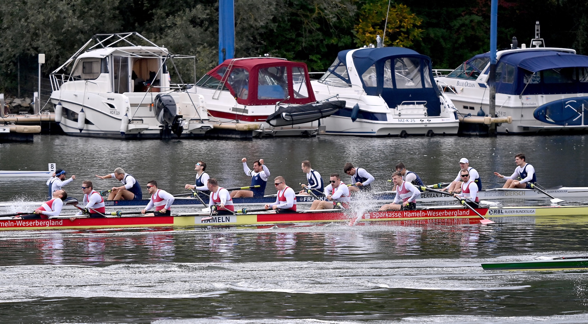 Zum ersten Mal seit vielen Jahren gelang es einem Team, den aktuellen DM-Titel aus dem Vorjahr zu verteidigen und das in einer überzeugenden Dominanz. Vorlaufsieg und Finalsieg jeweils in Tagesbestzeit errudert bzw. mit souveränem Abstand zu den hinter dem Germania-Achter platzierten Mannschaften (Silber: Osnabrück und Bronze: Hameln) sprechen für sich und bedeuten für unser so positiv eingestelltes Team einen Abschluss der Rudersaison 2025 im Jubelmodus. Nun kann nach einer wohlverdienten Pause die Ausrichtung auf die Saison 2026 mit überzeugenden Ergebnissen in der Tasche und hoher Motivation für Trainer Harald Blum und sein RBL-Gesamtteam beginnen.