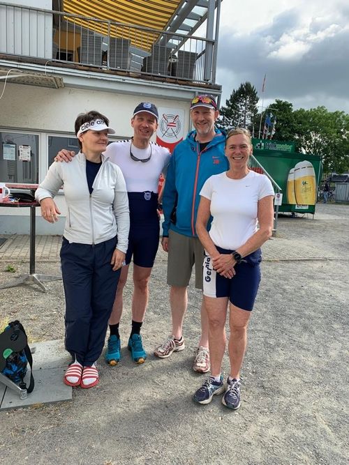 Im Masters-Mixed Doppelzweier Altersklasse D traten amPfingstmontag vormittags Anna Warnke und Jürgen Blatzheim gegen ein starkes Giessener Boot an, hier hatten Kirstin Pfnür und Volkhard Kempf kurzfristig nachgemeldet. Die Giessener gewannen knapp vor Anna und Jürgen, knapp dahinter kamen Kirstin und Volkhard ins Ziel. Elke Rosak war zur mentalen und logistischen Unterstützung mit angereist.