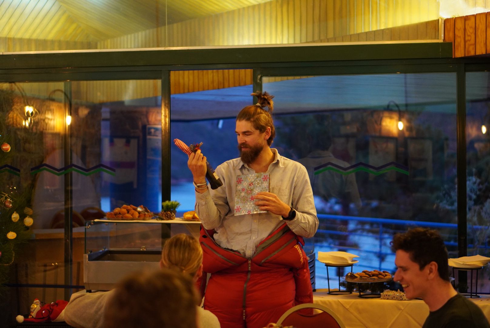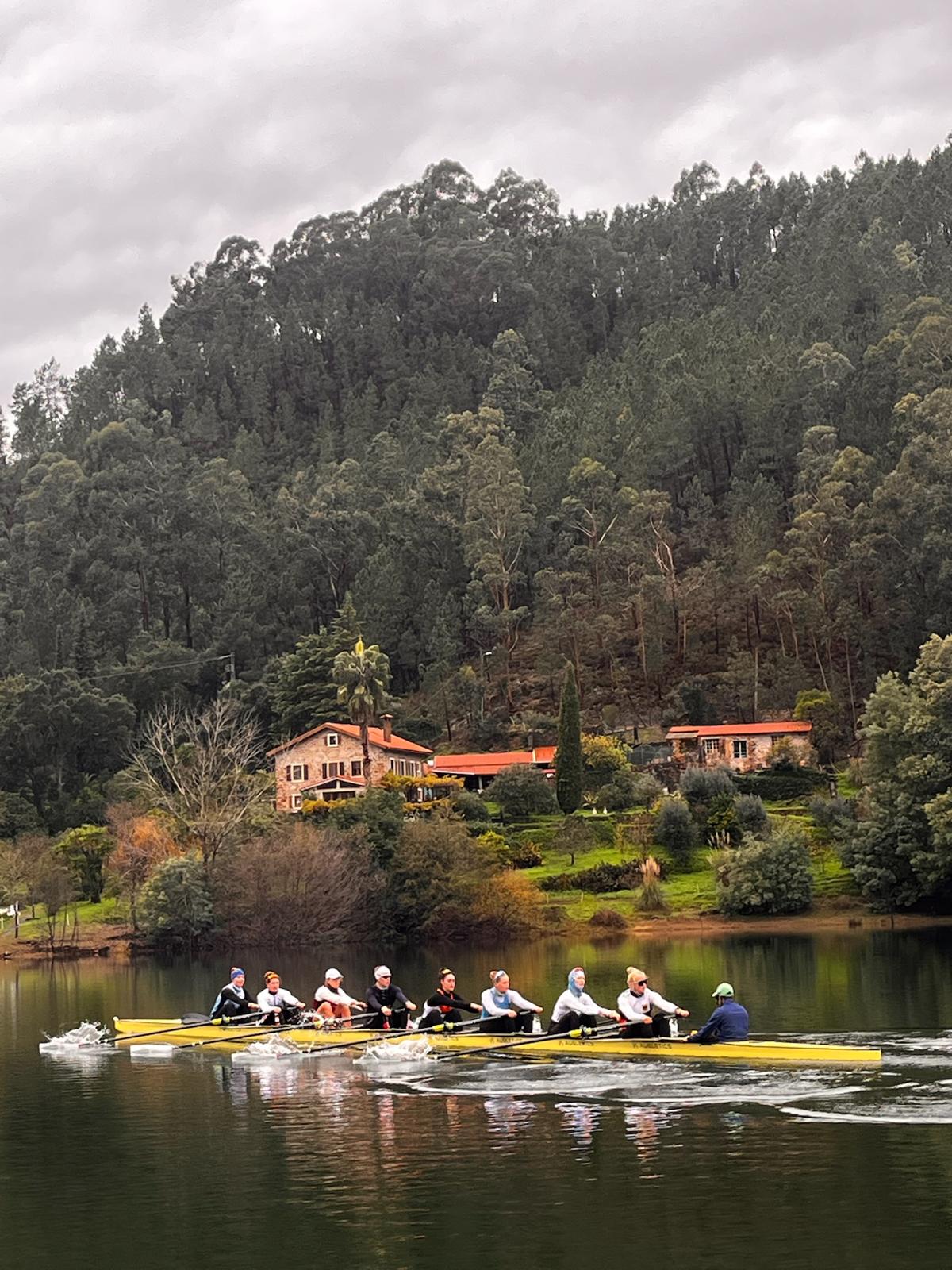 Auch neben dem Training auf dem Wasser war der Teamgedanke groß, vor allem am 3. Advent. Das war der einzig trainingsfreie Tag und es wurde weihnachtlich. Hier spielte Theis beim gemeinsamen Wichteln den Weihnachtsmann. Im Anschluss gab es Aufführungen aller Disziplinen. Von Gesang über ruderbezogenes Krippenspiel bis hin zu einem KI generierten Song war alles dabei. Zum Abschluss am Abend fand noch eine große Schnitzeljagd statt, die von den Athleten für die Athleten organisiert wurde. Ein sehr gelungener und freudiger Tag. Im Trainingslager ist so nicht nur Platz für viele Trainingskilometer, sondern auch ein bisschen Spaß. Apropos, besser ist die Freude am Rudern mit gutem Training zu verbinden. So machte der Frauenachter mit Anna eine besondere letzte Rudereinheit, einen Marathon, und entdeckten den Lago Azul von einer ganz anderen Seite.