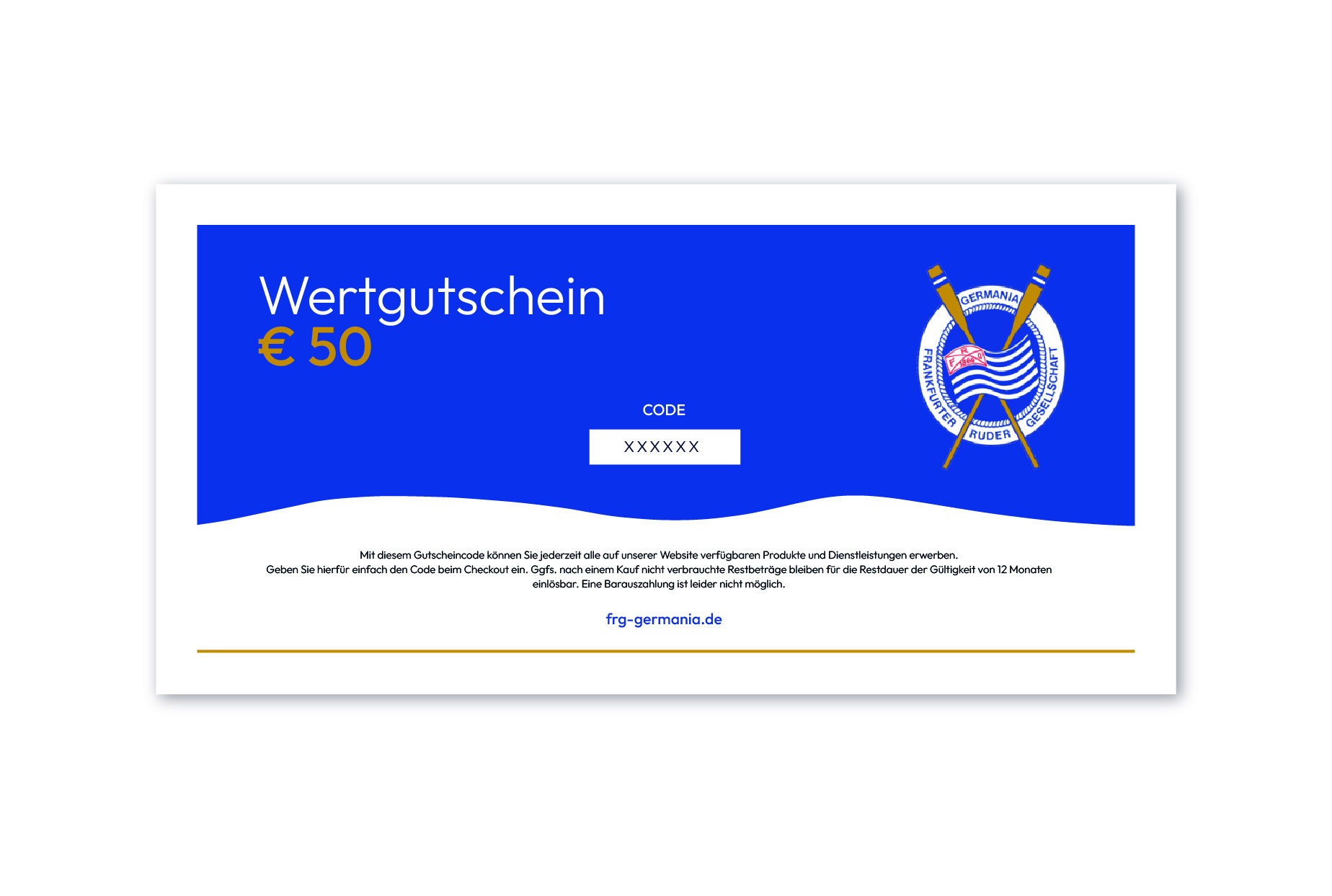 Wertgutschein über 50€, jederzeit online einlösbar.